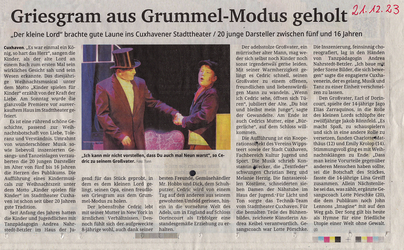 Im gleichen Zuge wird das kulturelle Angebot, der Stadt Cuxhaven, durch diese Institution erweitert, und jungen Menschen wird ein neuer Zugang zu den darstellenden Künsten ermöglicht.